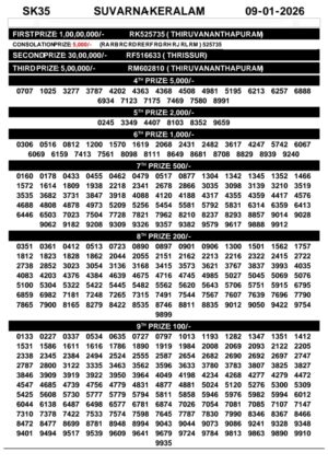 Check Kerala Lottery Result Today with live updates, winning numbers, charts, and recent SM, SK, KR, SS, BT, DL results. Fast and accurate Kerala State Lottery results.